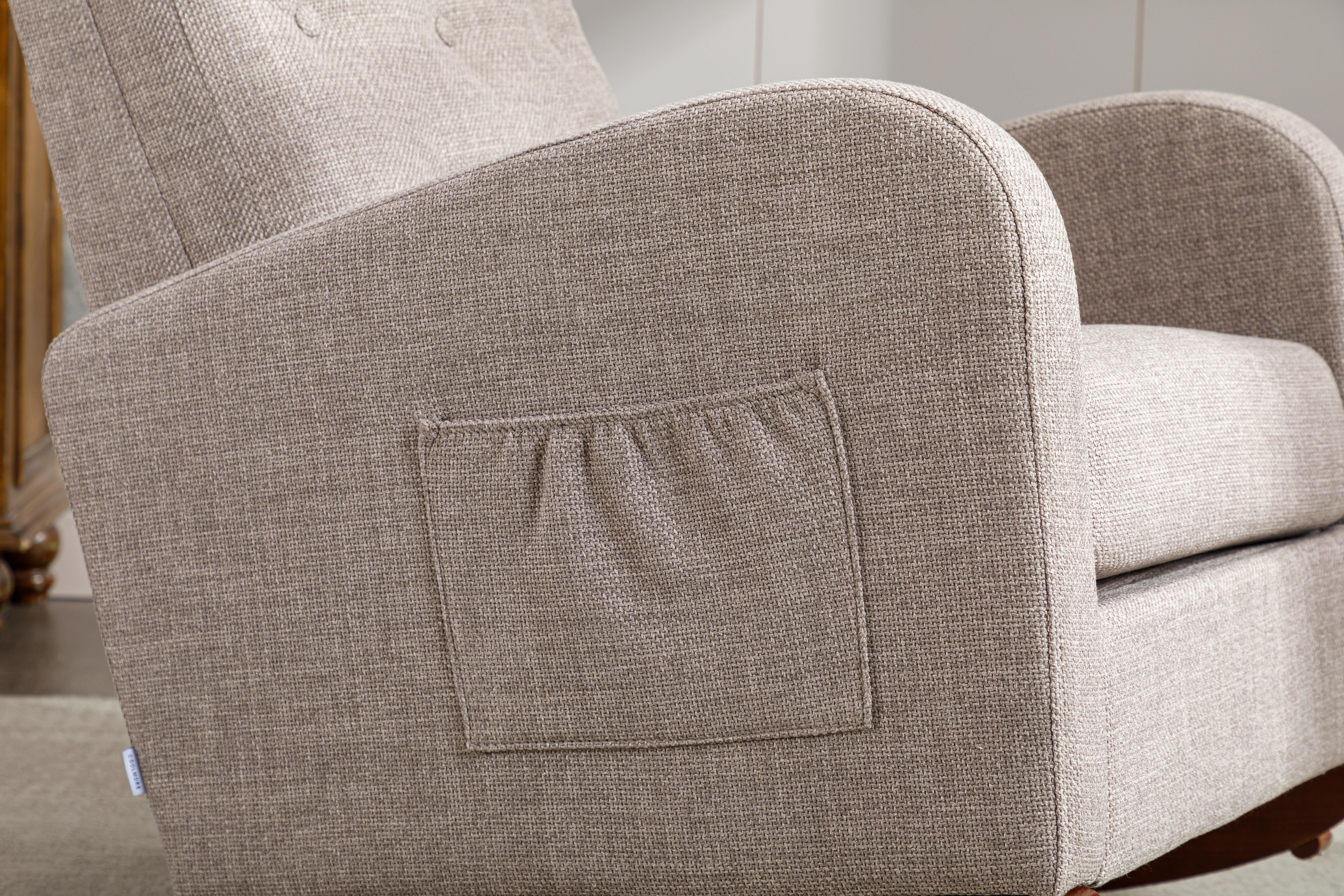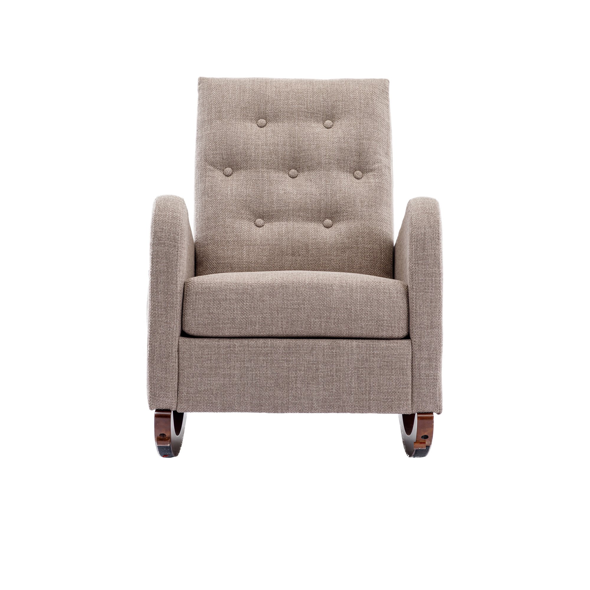 High Back Rocking Chair Nursery Chair .Comfortable Rocker Fabric Padded Seat .Modern High Back Armchair