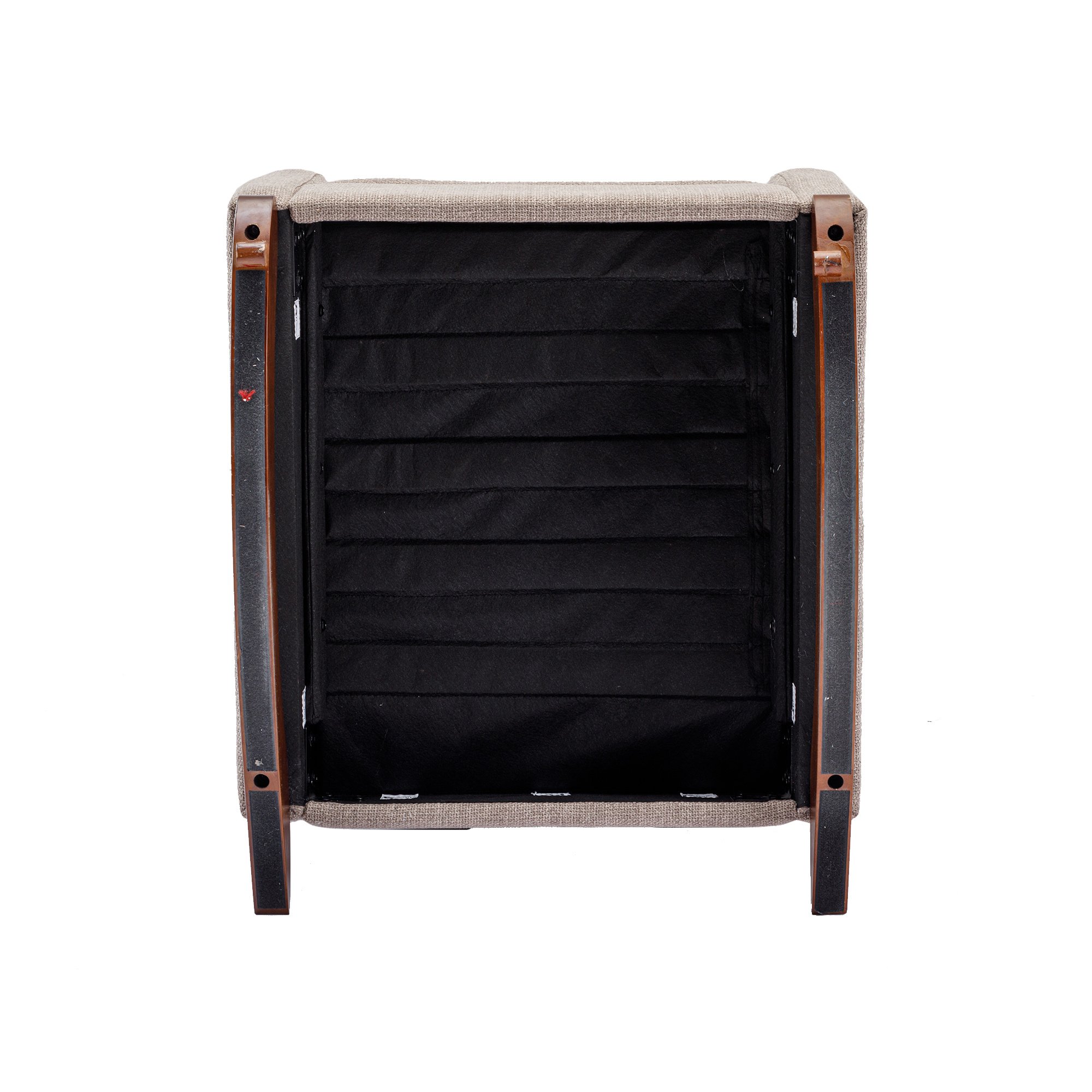 Weights & DimensionsUpholstery MaterialPOLYESTER fabricSeat Fill MaterialFoamBack Fill materialFoam with upholsteryWeight Capacity300 lbFrame MaterialSolid +PlyWoodArms IncludedYesLeg ColorBrownUpholstered Seat Cushion IncludedYesLeg MaterialSolid Rubber woodCountry of OriginChinaProduct size25.59 X37.40X36.22 INCHSeat depth21.65"Seat Width20.08"Arm Height - Floor to Arm25.09"Seat Height21.26"Net /Gross weight41.88LBS / 46.28LBS